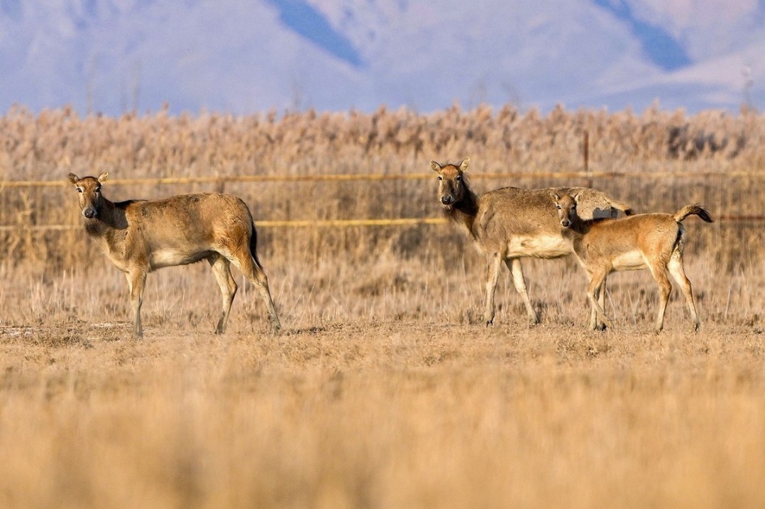 - Milu deer at Qingtongxia Reservoir Wetland Nature Reserve in Ningxia