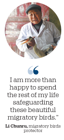 Farmer's efforts to rescue migratory feathered friends help create movement to strengthen ecology. Hou Liqiang reports.