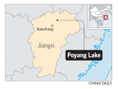 Poyang Lake, which now has cleaner water, greener grass and more flowers along its shore, is now visited by about 750,000 migratory birds every year.