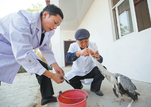 Though he was only a farmer at the time, he was able to learn a bit from a local medical school in Jiujiang, a city that administrates the village of Dongzili. With that knowledge, he was able to treat and release about 300 of the chicks.