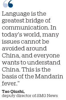 "At the beginning, we thought that the 'Mandarin fever' was a phenomenon in the US," Tao Qiushi, deputy director of SMG News, said. However, while producing the documentary, the team found people's enthusiasm for learning Chinese was "beyond our imagination", he said.