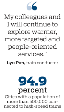 "The past decade has witnessed the upgrading of trains to the new generation of intelligent high-speed models," Lyu says, adding that the service equipment has become more user-friendly and intelligent, with the comprehensive abilities of the crew constantly improving.
