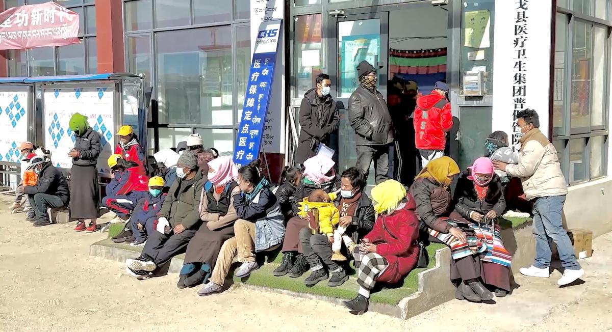 Assisted by their parents, some children in Tibet wait for heart exams by the TEDA International Cardiovascular Hospital in Tibet in early May. [Provided to chinadaily.com.cn]