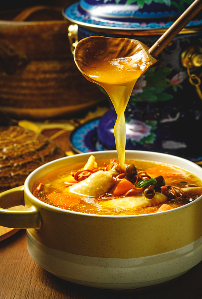 Drinking stewed soup