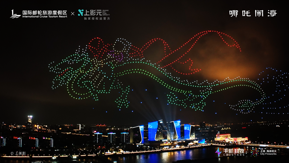 Drone show lights up night sky with characters from classic Chinese film