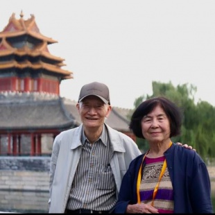 Chuang Ling, the son of Chuang Yan, former vice curator of the Palace Museum in Taipei, poses for a photo with his wife while visiting Beijing for an exhibition commemorating the miraculous evacuation of the Palace Museum's collection during Chinese People's War of Resistance against Japanese Aggression more than 80 years ago, in Beijing, capital of China, Sept. 30, 2025. [Photo/Xinhua]