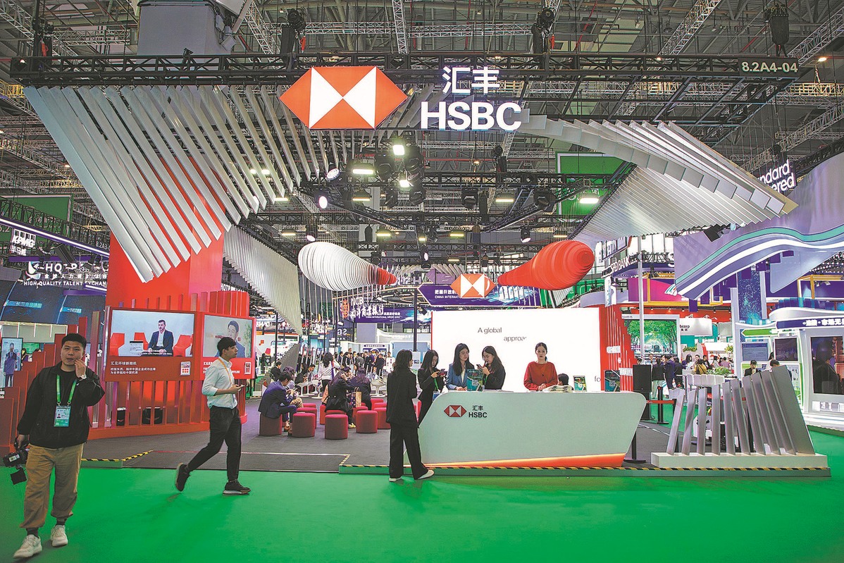 A photo is captured at the exhibition stand of HSBC during the 7th China International Import Expo in Shanghai on Nov 7. HU XUEBO/FOR CHINA DAILY