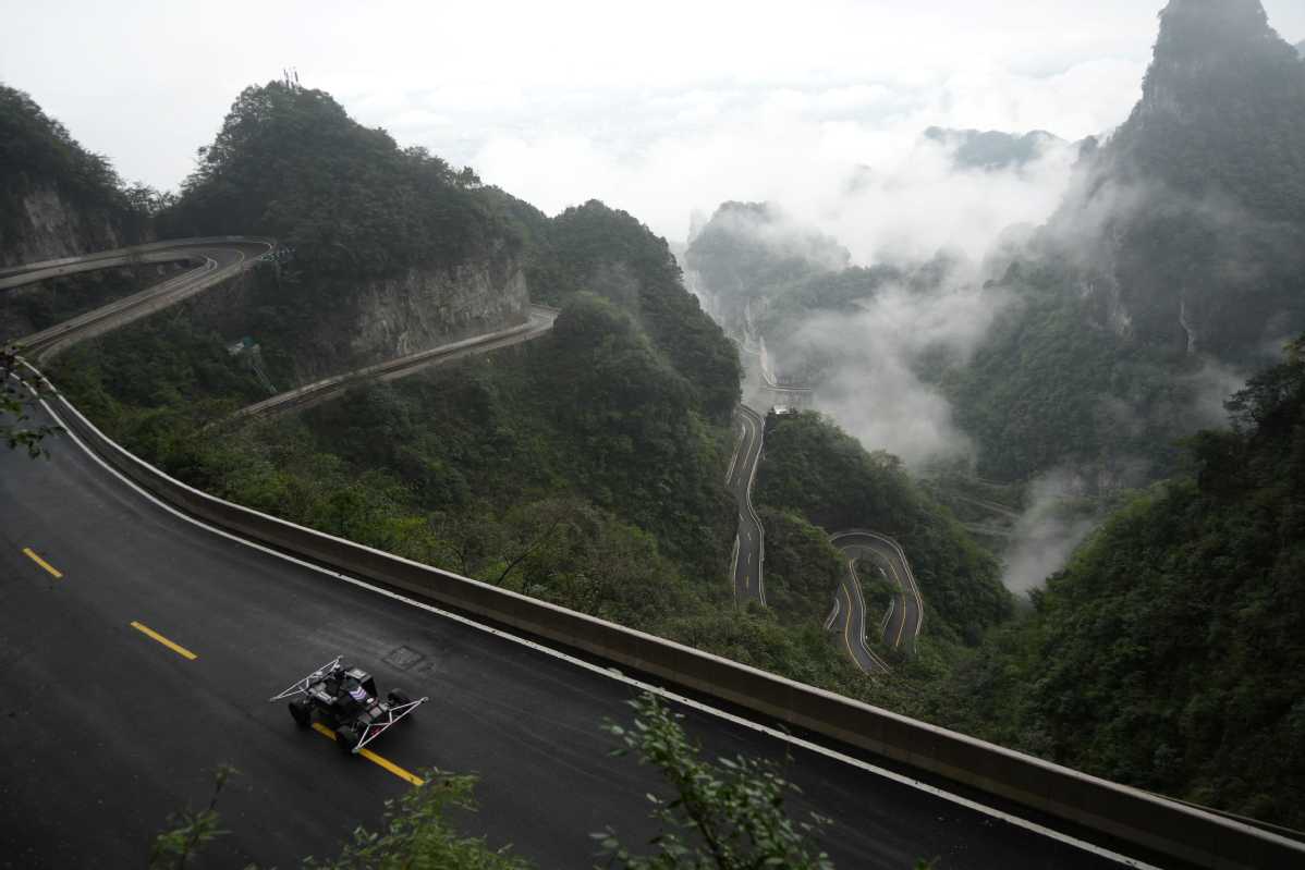 The renowned 10.77-kilometer road of Tianmen Mountain in Zhangjiajie ascends from an altitude of 200 meters to 1,300 meters, featuring 99 bends—including numerous 180-degree hairpin turns—that present a supreme challenge for both human and AI drivers.