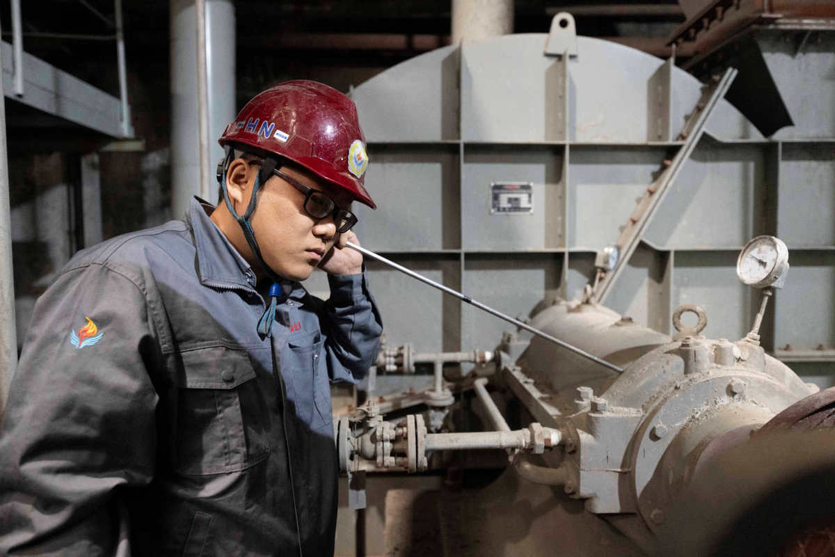 A staff member inspects heating facilities at a heating service company in Harbin, Northeast China's Heilongjiang province, Oct 20, 2025. [Photo/Xinhua]