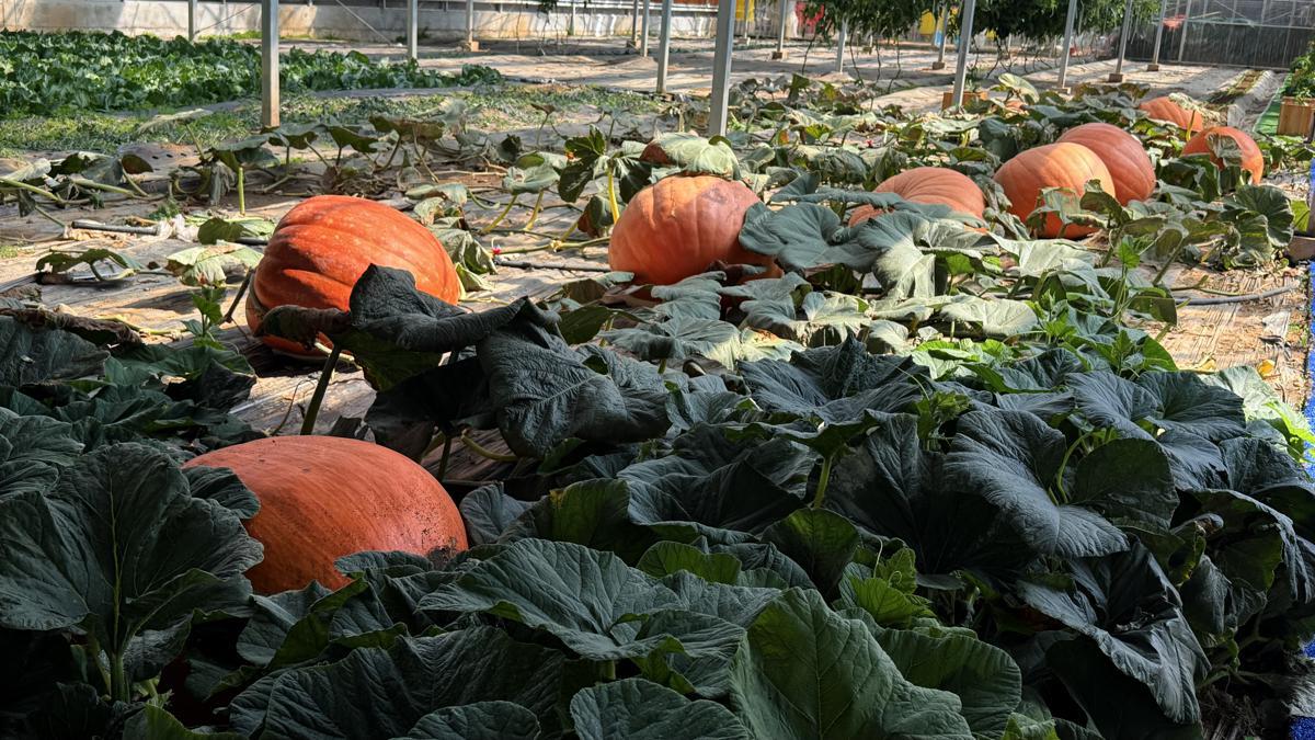 A view of the giant pumpkins in an agricultural park in Maldrogungkar county of Lhasa, Xizang autonomous region. [Photo by Kelsang Lhundrub/For chinadaily.com.cn]