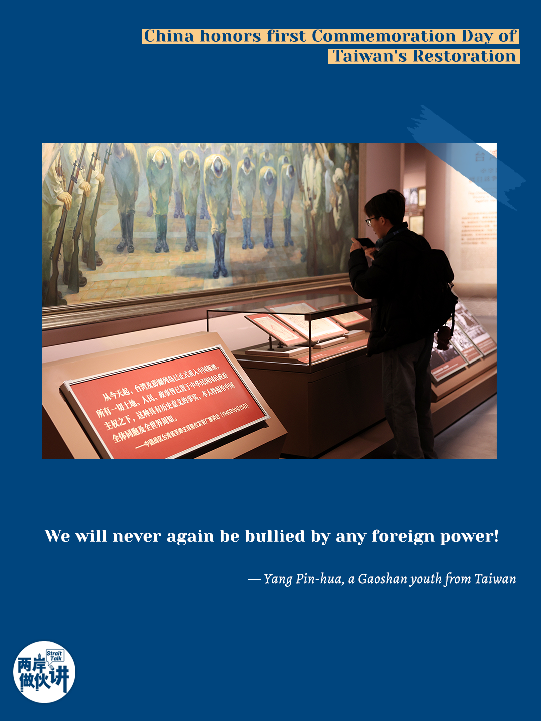 Taiwan compatriots voice unity on the 80th anniversary of Taiwan's restoration