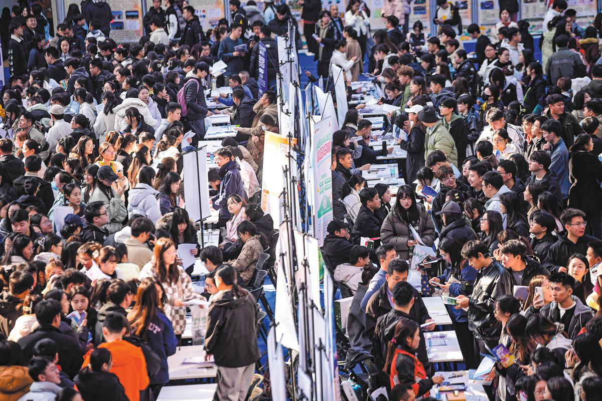 Students seek job opportunities at an autumn recruitment fair for graduates held at the Shenyang Agricultural University campus on Oct 25, 2025 in Shenyang, the capital of Liaoning province. Nearly 300 companies participated in the job fair, offering around 10,000 positions. September and October are usually the peak months of autumn recruitment in China. [Photo provided to CHINA DAILY]