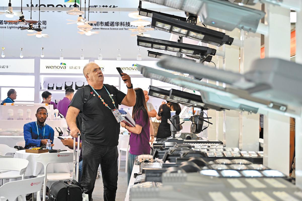 An overseas buyer takes photos of some solar lamps during the 138th China Import and Export Fair in Guangzhou, Guangdong province, on Oct 16. CHEN CHUHONG/CHINA NEWS SERVICE