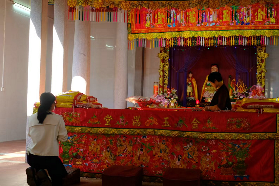 A woman worships Xianweng, a deity of the Lianhua Mountain in the Chenghai district, Shantou, South China’s Guangdong province, on Oct 29, 2025. [Photo by Yang Xiaoyu/chinadaily.com.cn]