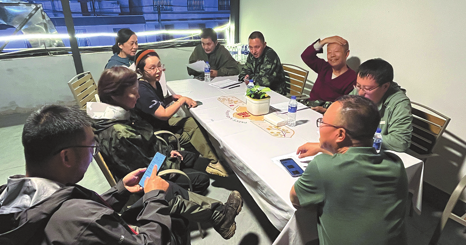 Four birdwatchers (left) answer questions from the festival's judges in Lancang on Nov 3. CHEN LIANG/CHINA DAILY