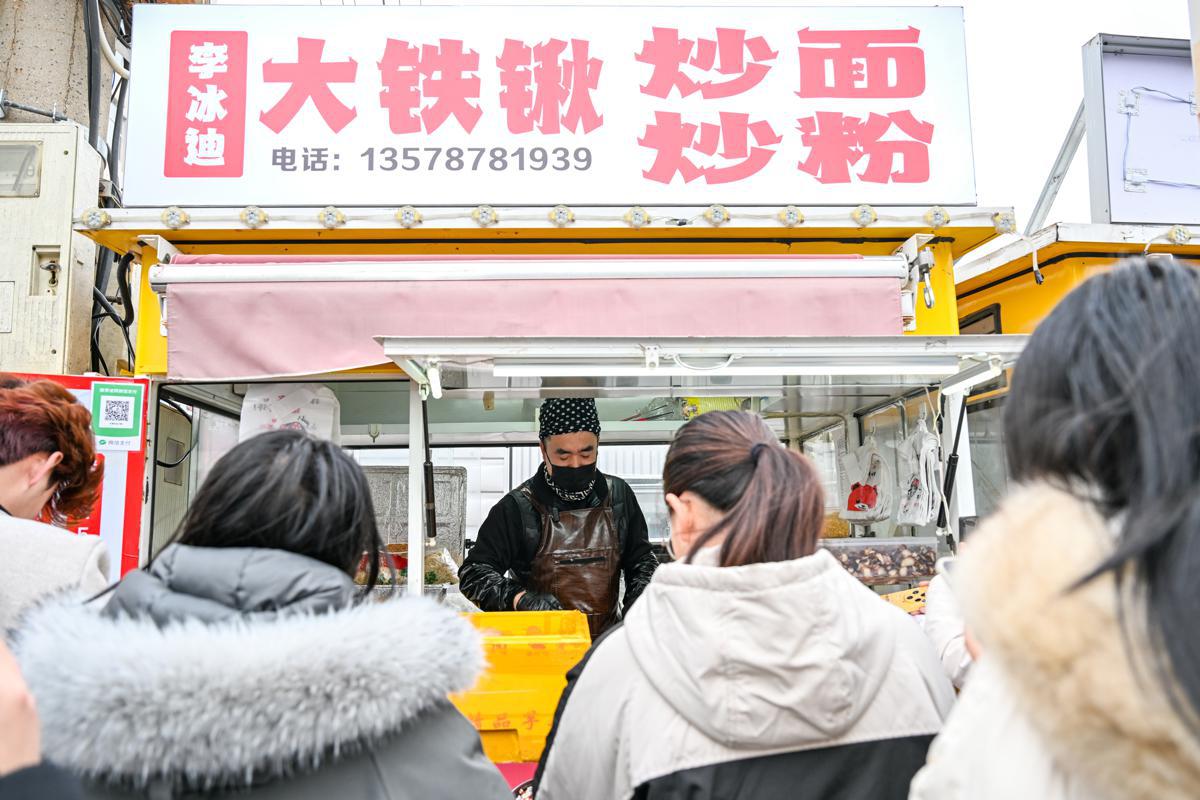 College students queue up to buy egg-fried rice at Li Bin's stall near Jilin Normal University in Siping, Jilin province. [Photo by Luo Hao/For chinadaily.com.cn]