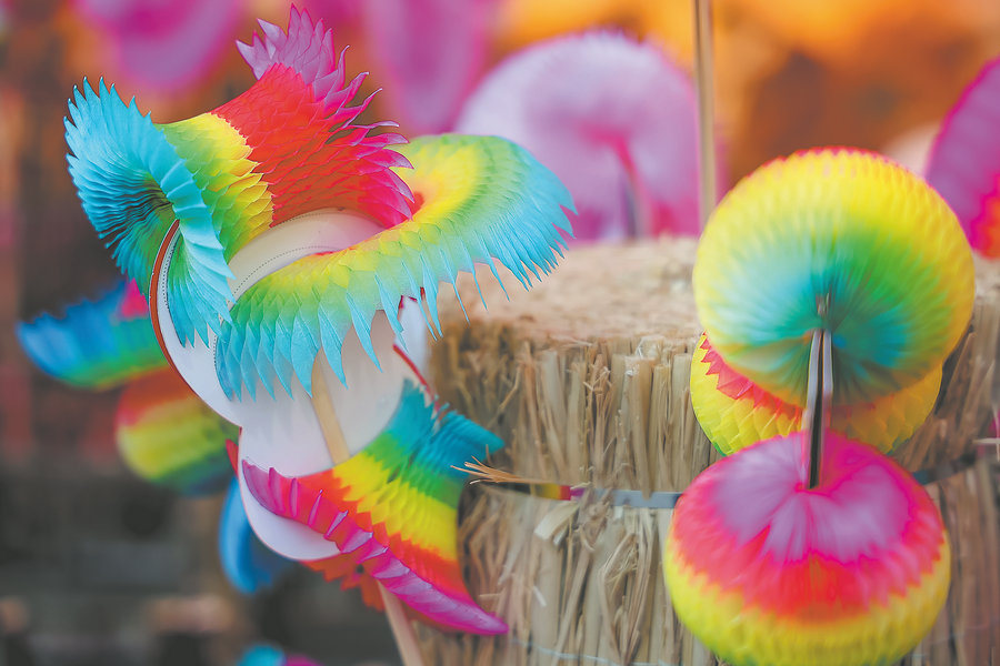 The paper flower flipping craft, one of the country's intangible cultural heritage items, is also showcased. [Photo by Gao Erqiang/China Daily]