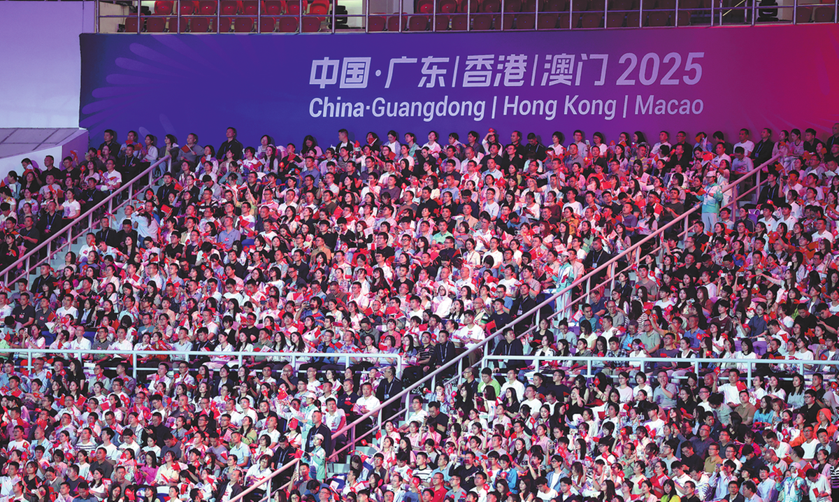 Audience members watch a warm-up performance during the opening ceremony of the 15th National Games in Guangzhou, Guangdong province, on Nov 9. FENG YONGBIN/CHINA DAILY