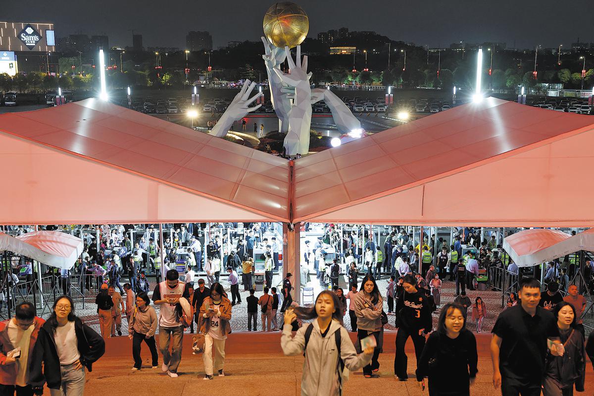 Fans enter the venue for the men's basketball final of the games in Dongguan, Guangdong, on Nov 12. WEI XIAOHAO/CHINA DAILY
