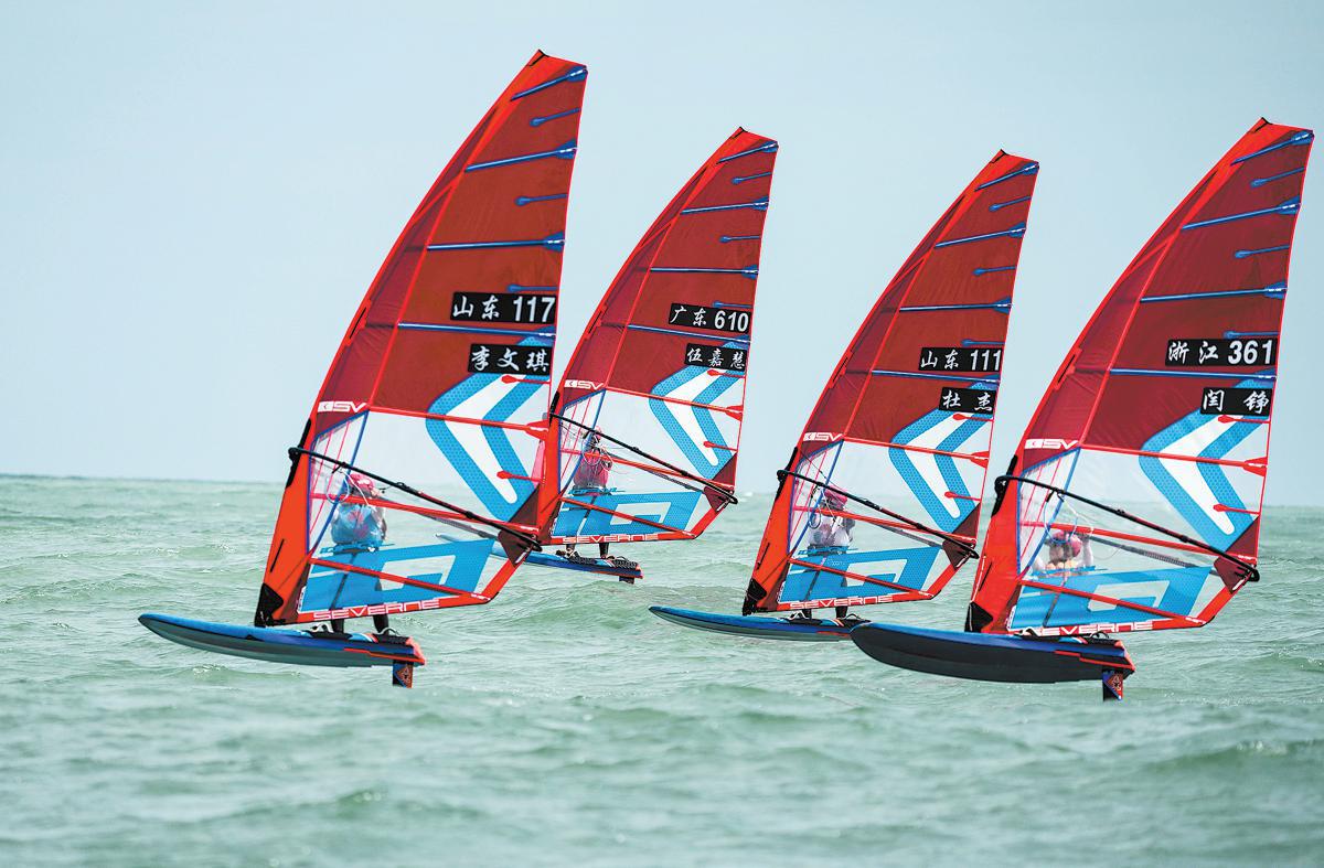 Athletes compete in hydrofoil windsurfing during the games in Shanwei, Guangdong, on Oct 30. JIGME DORJE/XINHUA