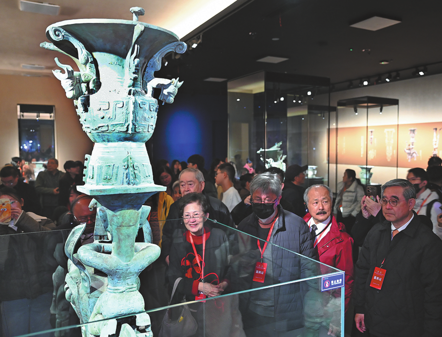 Attendees from Taiwan participating in the cross-Strait exchange event view an exhibit at the Sanxingdui Museum in Guanghan, Sichuan province, on Wednesday. ZHANG LANG/CHINA NEWS SERVICE