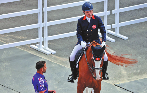 Hong Kong athlete Isaac Wong in the equestrian dressage event at the 15th National Games in Shenzhen, Guangdong province, on Nov 10. PARKER ZHENG/CHINA DAILY