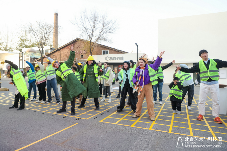 The art group Art Workers stage a performance at the 798 Art District for the opening of the 2025 Beijing Technology and Art Week. [Photo provided to chinadaily.com.cn]