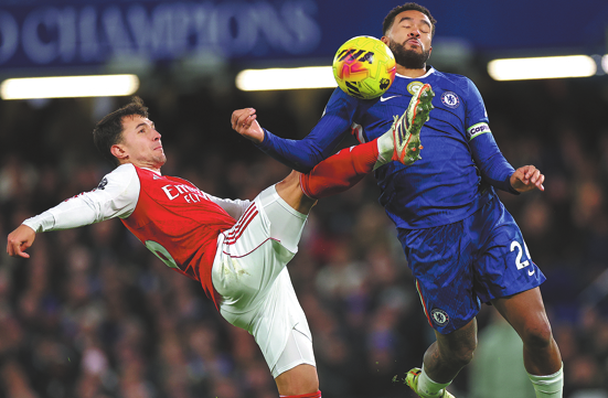Arsenal's Martin Zubimendi (left) fights for the ball with Chelsea's Reece James. REUTERS/AP