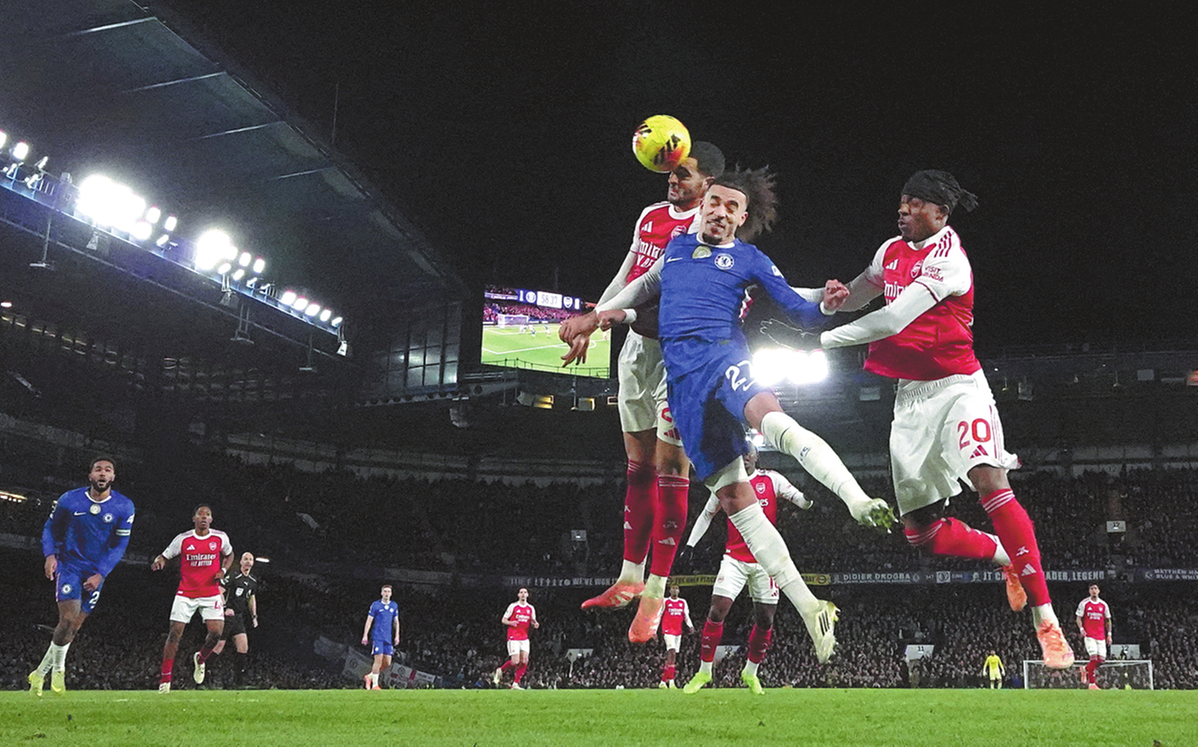 Arsenal's Mikel Merino (left) rises above Chelsea's Malo Gusto to head his side level and secure a 1-1 Premier League draw on Sunday. REUTERS/AP