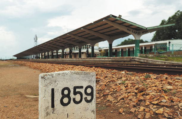 The platform and the 1859-kilometer milestone at the New Kapiri Mposhi Railway Station on Nov 14. PENG LIJUN/XINHUA