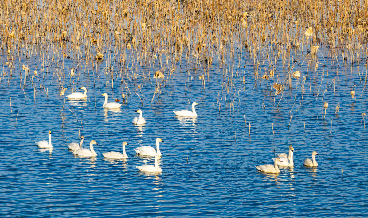 A drone photo taken on Dec 1, 2025 shows birds at the Lixiahe National Wetland Park in Xinghua city, East China's Jiangsu province. [Photo/Xinhua]
