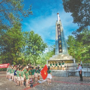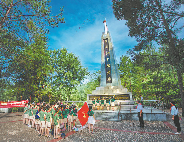 Students visit the revolutionary martyrs' memorial tower in Huichang. [Photo by Li Jianping/For China Daily]