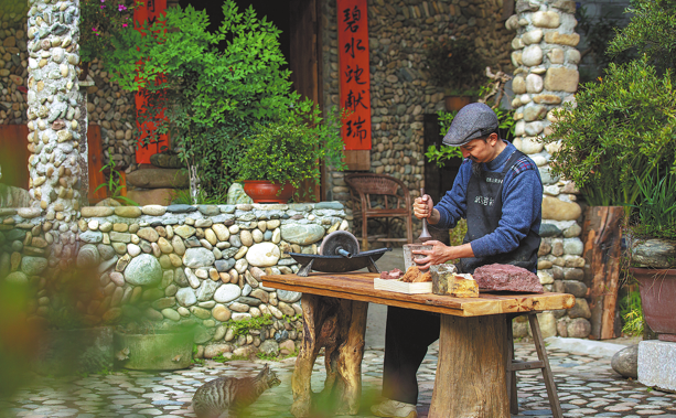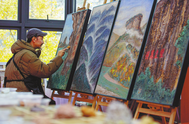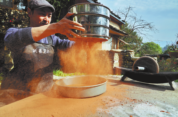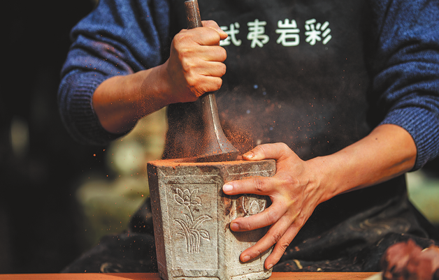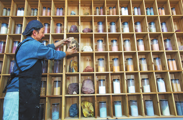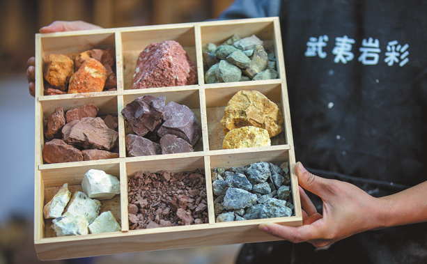 Famed worldwide for its unique Danxia landforms and prized Wuyi rock tea, Wuyi Mountain in East China's Fujian province has long been a muse, captured in poetry and sipped from cups. Its cultural essence is often distilled as "rock forms the mountains, rock infuses the tea". Today, a new artistic expression is emerging from this ancient landscape, one that literally grinds the mountains into pigment: rock color painting.