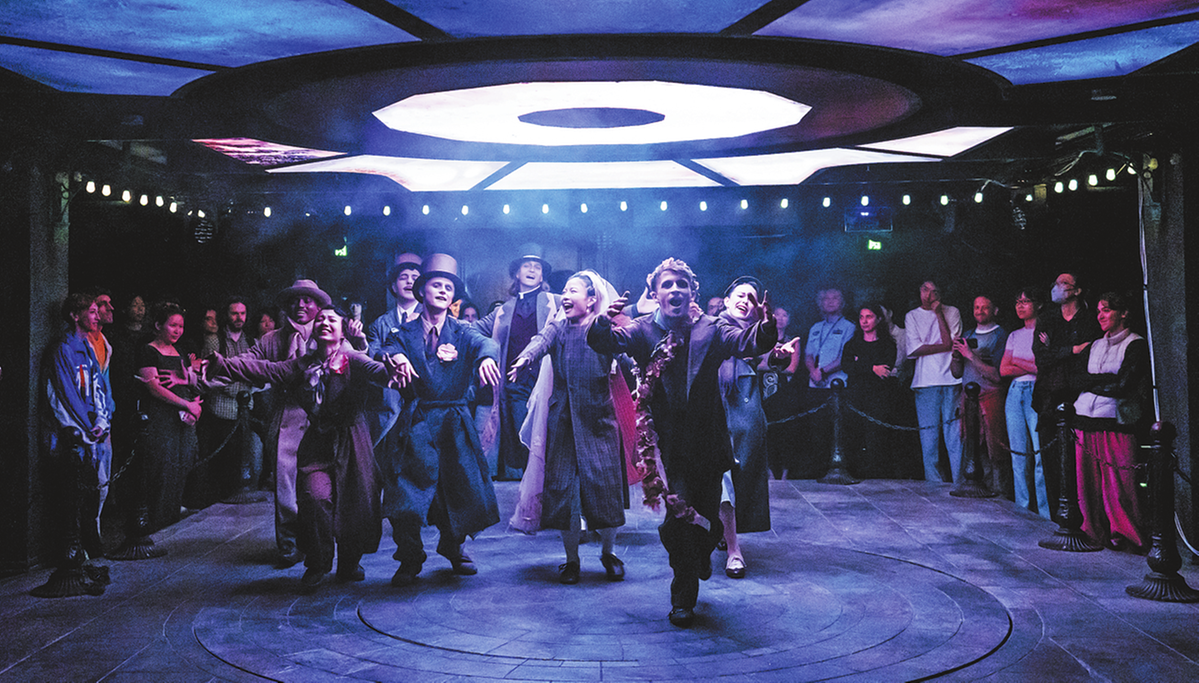 Scattered among the crowd, some performers play the accordion, cello, and violin, weaving a live musical score throughout the theatrical experience that deepens the drama and enriches every scene.