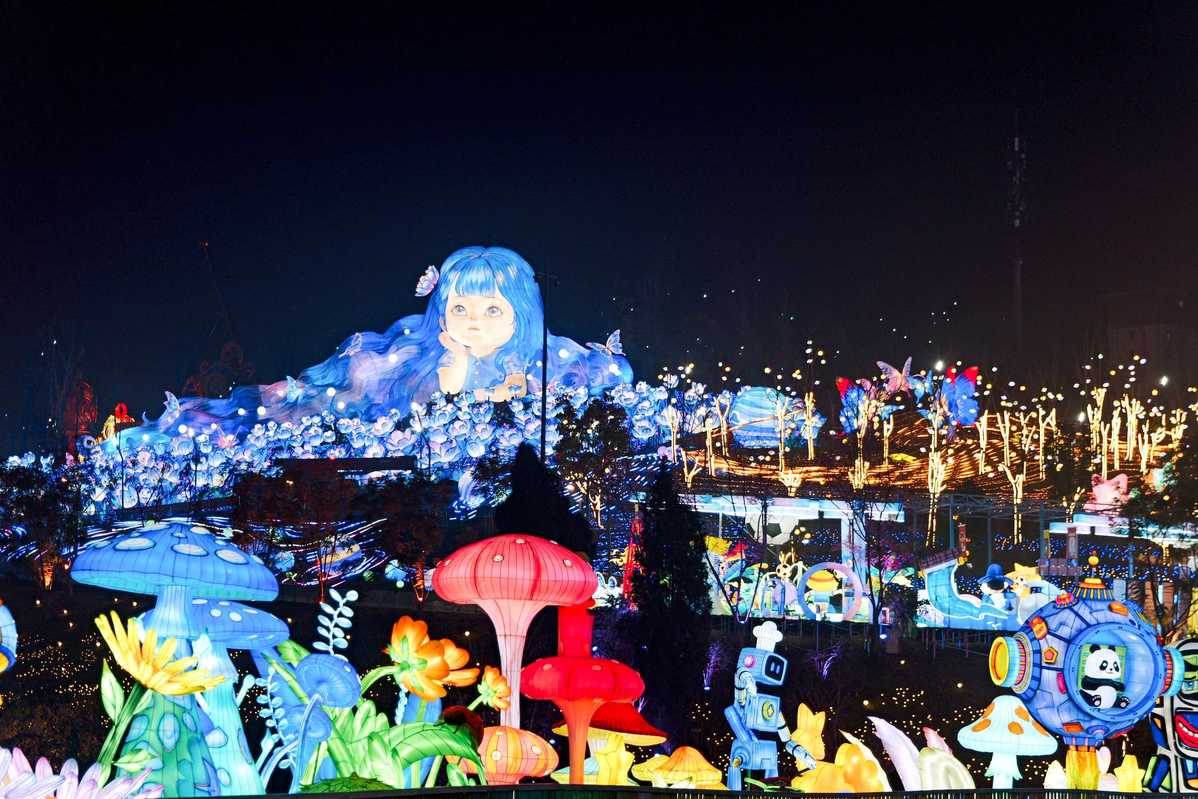 A variety of lantern installations are set up at the Chinese Lantern World in Zigong, Sichuan province, in preparation for the upcoming 32nd Zigong International Dinosaur Lantern Festival, which is set to kick off on Friday. [Photo provided to chinadaily.com.cn]