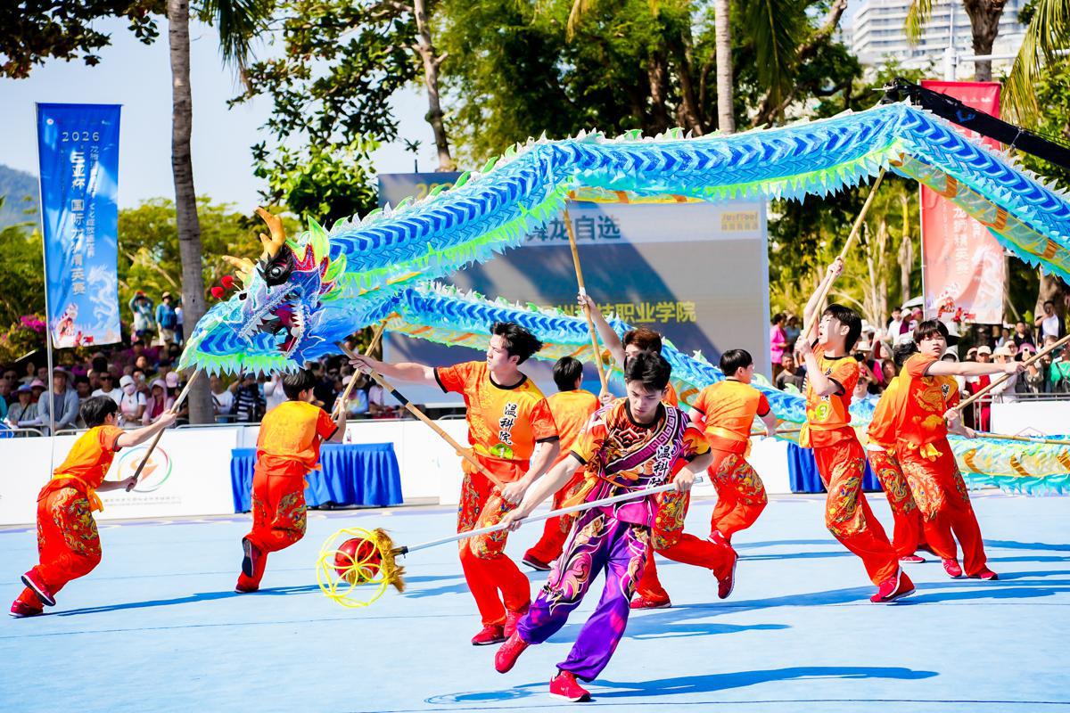 About 300 athletes representing 24 international teams competed at the 2026 Sanya Cup International Dragon and Lion Dance Elite Competition in Sanya, Hainan province, from Jan 18 to 19. [Photo provided to chinadaily.com.cn]