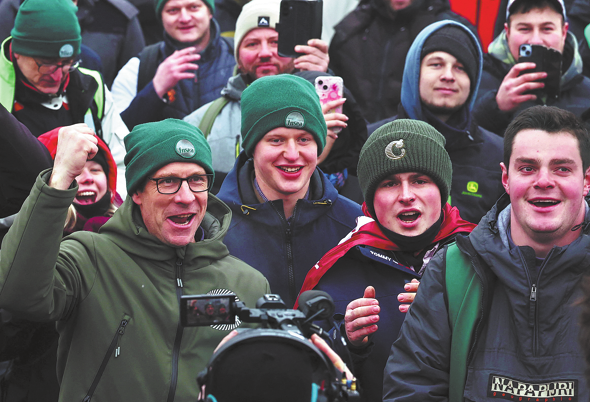 Farmers from across Europe celebrate after the European Parliament voted on whether to refer the EU-Mercosur trade agreement to the Court of Justice of the European Union, in Strasbourg, France, on Wednesday. YVES HERMAN/REUTERS