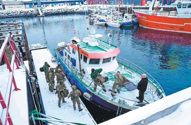 Danish soldiers arrive at the port in Nuuk on Jan 18. MADS CLAUS RASMUSSEN/AFP