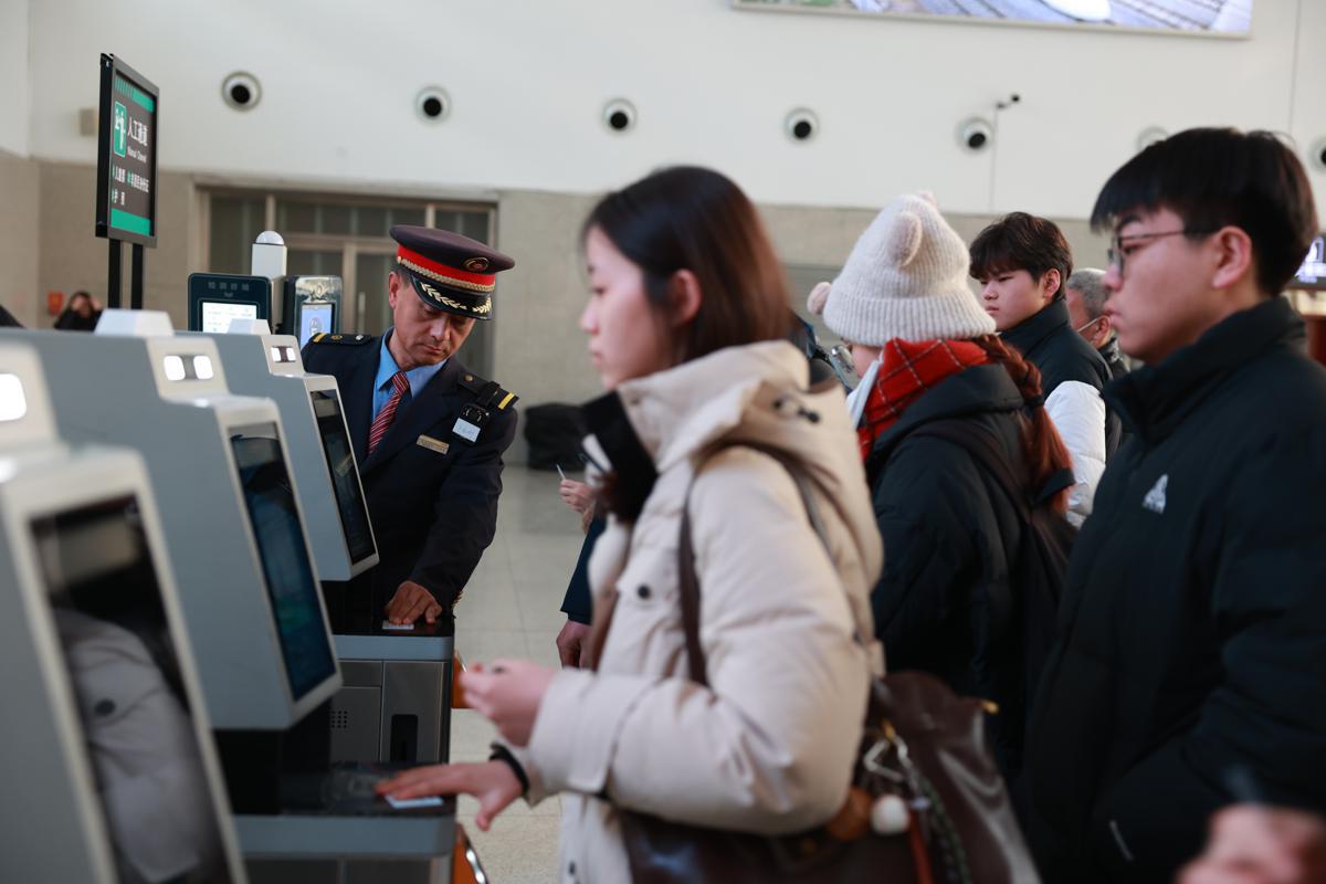 Passengers check in at Baiyangdian Railway Station on Monday morning. [Photo by Hu Jun/For chinadaily.com.cn]