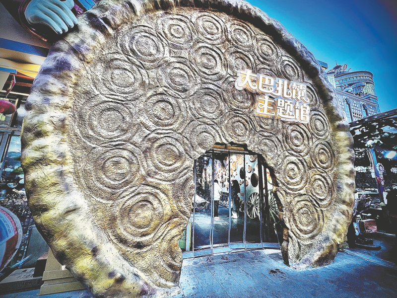 At Urumqi's Grand Bazaar, you don't just get a taste of Xinjiang culture — you can step into it, when you walk through the doorway framed by a bite taken out of the Naan House's bread-shaped facade.