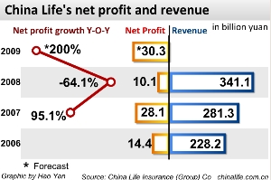 China Life sees 2009 earnings up over 200%