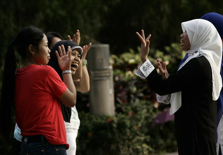 Several Filipina maids enjoying their rest time during a weekend in Hong Kong. Increasing numbers of Chinese families who can afford to pay more are willing to hire Filipina maids, even at the expense of flouting the law. [Photo/China Daily]
