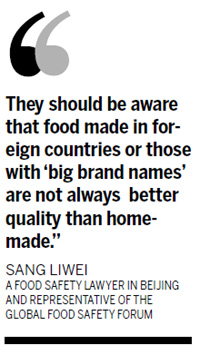 "They should be aware that food made in foreign countries or those with 'big brand names' are not always better quality than home-made," Sang said.