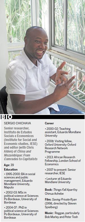 Chichava, relaxed and confident, has just edited a book, China and Mozambique: From Comrades to Capitalists, with Chris Alden, professor of international relations at the London School of Economics and a leading China-Africa expert. It includes chapters from no fewer than 10 authors, including the co-editors.