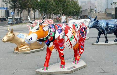 Kid-shaped fruit is displayed in Hangzhou, East China's Zhejiang province, on Oct 5, 2014. It doesn't have a natural kid shape, but is turned into that shape through "plastic surgery", by putting a mould when the fruit starts to grow. [Photo/IC]