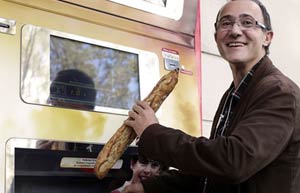 Yu Baofeng, a deliveryman of YT Express, waits for clients to check their parcels in Huzhou, East China's Zhejiang province, Sept 25, 2014. [Photo/IC]