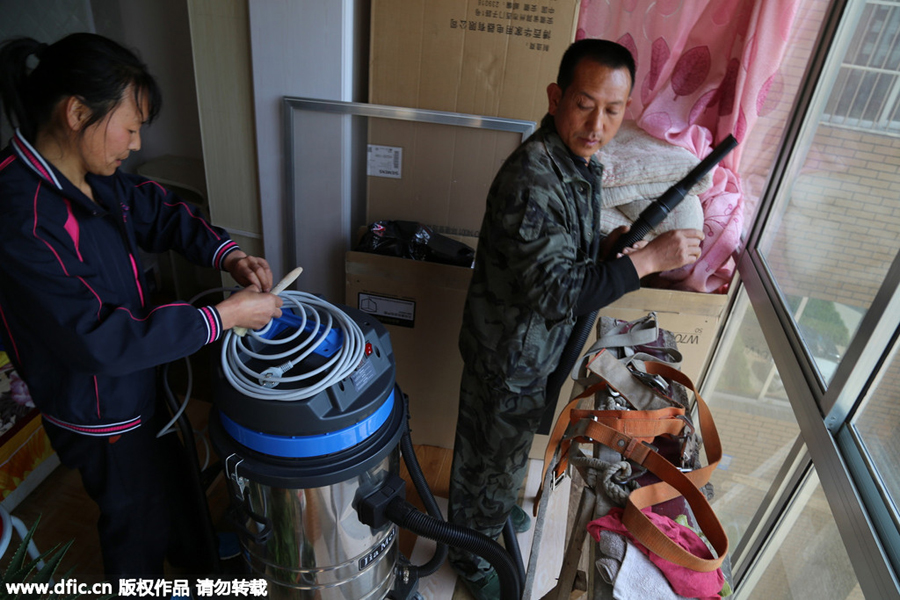 Zhu Xiaolin, 45 years old, is one such "spider man", and has been working in this line for ten years in Pingliang, a small city in Northwest China's Gansu province. Currently, he can earn between 6,000 to 14,000 ($2,260) yuan per month. In Pingliang, the average wage for migrant workers from rural areas with little education is only2,000 to 3,000 yuan.