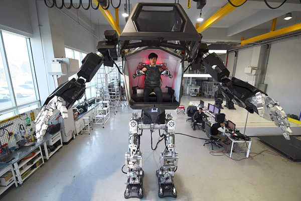 Engineers test a four-meter-tall humanoid manned robot dubbed Method-2 in a Hankook Mirae Technology lab in Gunpo, South Korea, Dec 27, 2016. [Photo/VCG] |