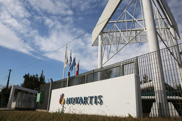 Gates of the offices of Swiss pharmaceutical giant Novartisin in Athens on Jan 4, 2017. [Photo/IC] |