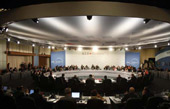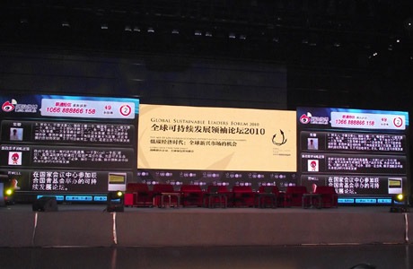 UN Secretary-General Ban Ki-moon delivers a video speech at the opening ceremony of the Global Sustainable Leaders Forum (GSLF) 2010,Nov 23, 2010.
